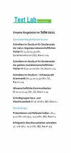 Text Lab Angebote im Sommersemester 2011